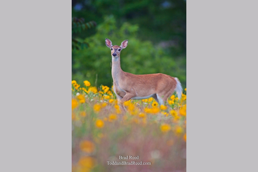 When I finished playing soccer tonight at the fields along Bryant Road, I noticed two deer in the field of flowers across the street. Not wasting time to take my cleats or shin guards off, I snuck across the street and made this photograph. It was totally worth being sighted by innocent passers-by who must have thought I looked very strange.