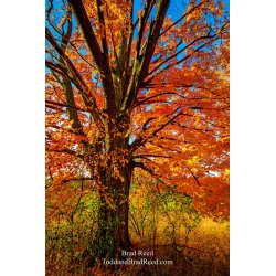 I have enjoyed several grand scenic landscape views with countless trees along M22 today. But now, near Elberta, just one lone maple tree is putting on one spectacular fall color show.