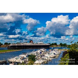 I have witnessed several thousand sunsets on the Ludington waterfront, but I never tire of looking for that next spectacular one, especially for the ones that are dramatically different from all the others. On this April evening, a front was approaching from the northwest just as the sun was setting. The bottom of the clouds looked like fiery flames as they swept toward shore. I am glad I was there to witness and make art of this sunset.
