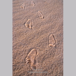 My son Ethan walks along a small sand dune behind my dad and stepmom's house at Crosswinds along Lake Michigan. I follow behind with my camera to photograph his tiny footprints in the sand.