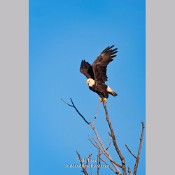 I spot a bald eagle on a favorite morning fishing perch overlooking Lake Michigan along South Lakeshore Drive. I set up nearby and wait about 20 minutes to capture its takeoff.