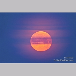 I am in position before 6:30 A.M. The moon drops behind streaks of clouds as it sets over Lake Michigan. The pre-sunrise color in the sky is breathtaking. I am in heaven shooting the moon.