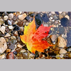 Floating lazily down the Sauble River toward Lake Michigan, a maple leaf drifts over rocky shallows. They say good things happen to those who wait; finding a good backdrop and waiting for the subject to come into it is relaxing and often rewarding.