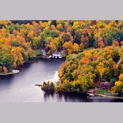 For whatever reason the human brain reacts more strongly to the color red than most other colors. The little red home on the right edge of this photo sticks out like a sore thumb in this very colorful aerial photograph that features the "narrows" of Hamlin Lake.