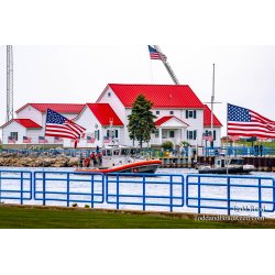 I have witnessed several thousand sunsets on the Ludington waterfront, but I never tire of looking for that next spectacular one, especially for the ones that are dramatically different from all the others. On this April evening, a front was approaching from the northwest just as the sun was setting. The bottom of the clouds looked like fiery flames as they swept toward shore. I am glad I was there to witness and make art of this sunset.