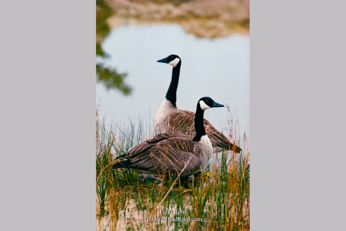 Determined to safeguard their offspring, a pair of proud-looking Canada geese share the watch while their tiny gosling peers out from beneath its mother's chest. I love exploring Ludington State Park in the springtime, looking for scenes like this one of the natural world coming alive with new life. I made this image from a respectful distance with a large telephoto lens, then moved on to seek other discoveries.