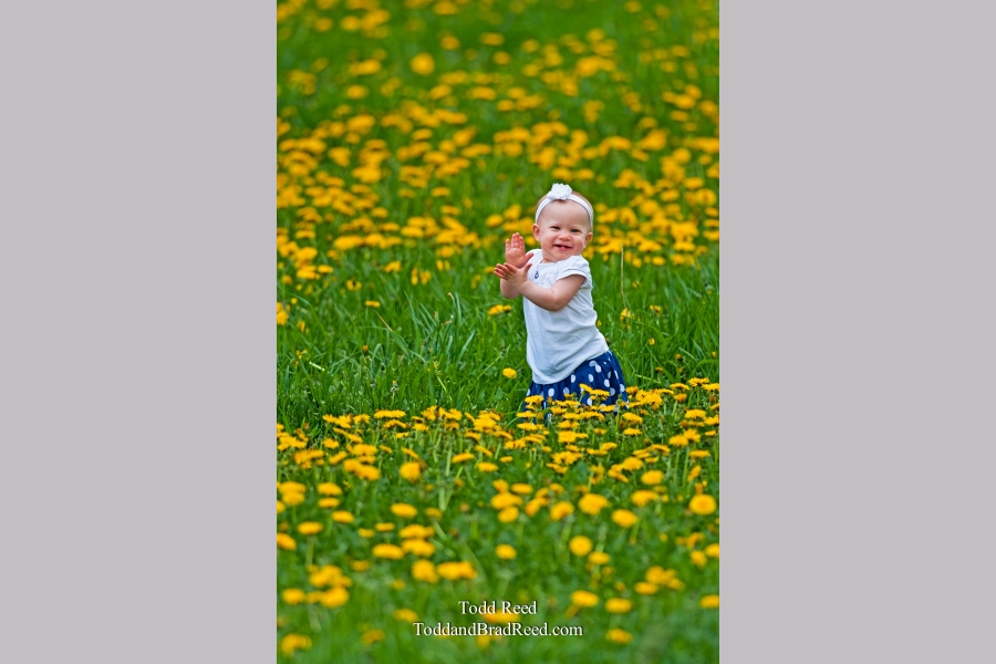 One-year-old Caly Eisenlohr stands out beautifully in a sea of dandelions. I was making an image of an orchard and the dandelions in full bloom along Pere Marquette Highway when Caly's parents, Jerrod and Tara, decided this was the perfect setting for them to take pictures of Caly and her three-year-old brother Owen.
